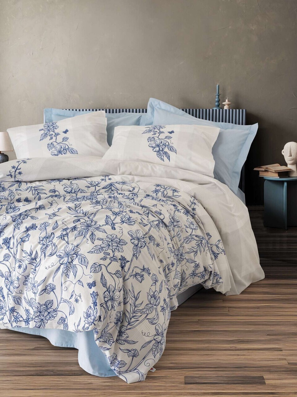 Lenjerie de pat pentru o persoana, Lessentiel Maison, Kaija, Bumbac Ranforce , Albastru