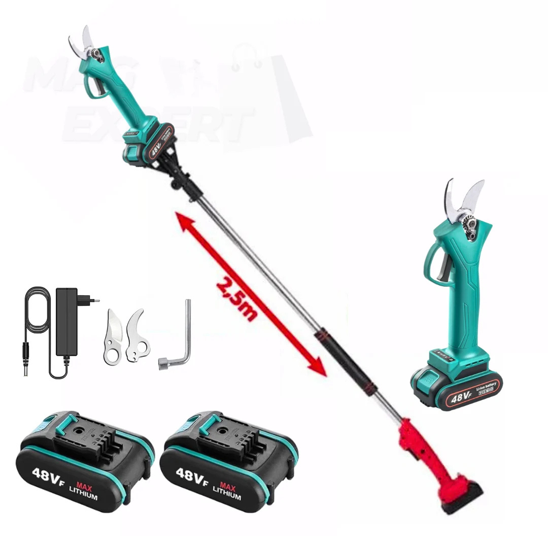 Foarfeca Electrica cu 2 Acumulatori 48V, 2M Tija Telescopica, pentru vie, pomi si crengi CU 2 ACUMULATORI 48V