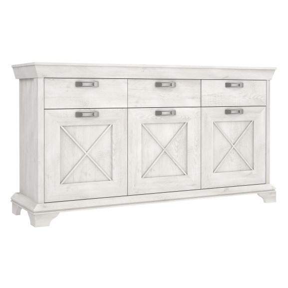 Bufet Kashmir, 3 usi si 3 sertare, Alb Antichizat, 177.7 Cm