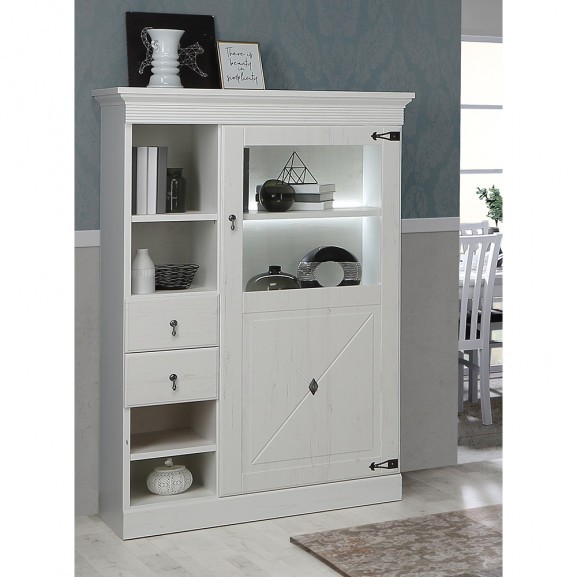 Vitrina Cu 3 Usi Si 1 Sertar Jasmine, Pin Alb Si Pin Antic, 93 Cm