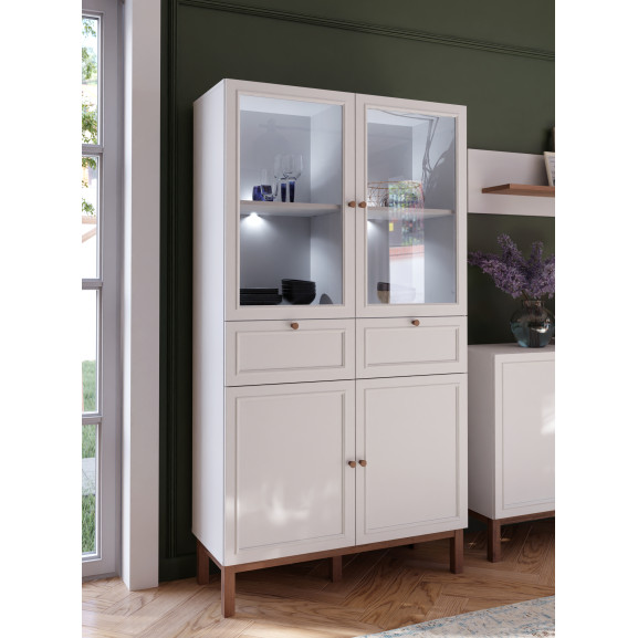 Vitrina 4 Usi Si 2 Sertare Pickadilly, Gri Deschis Si Stejar Pamantiu, 99.9 Cm