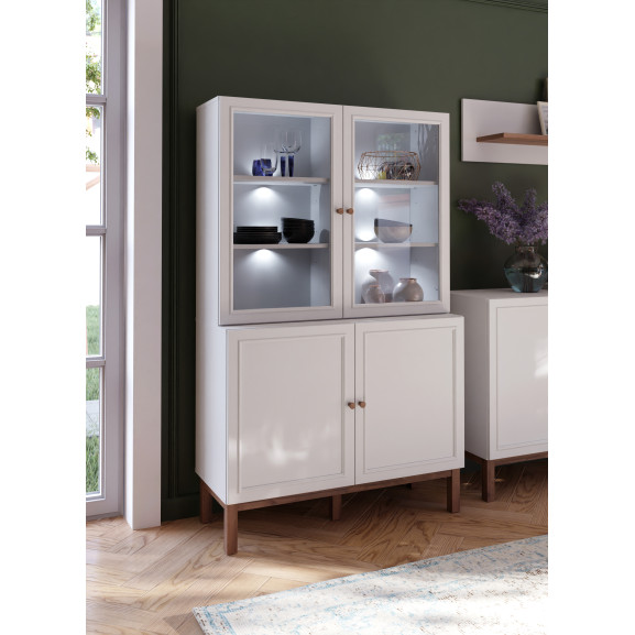Vitrina 4 Usi Pickadilly, Gri Deschis Si Stejar Pamantiu, 99.9 Cm