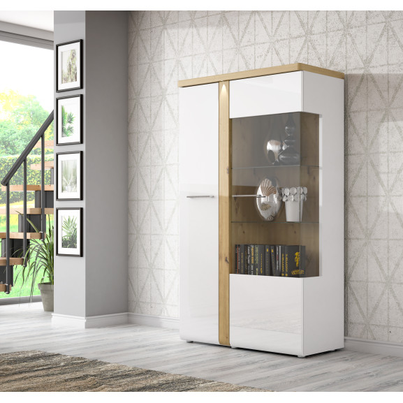 Vitrina Cu 1 Usa Tuluza, Stejar Artisan Si Alb Lucios, 66.5 Cm