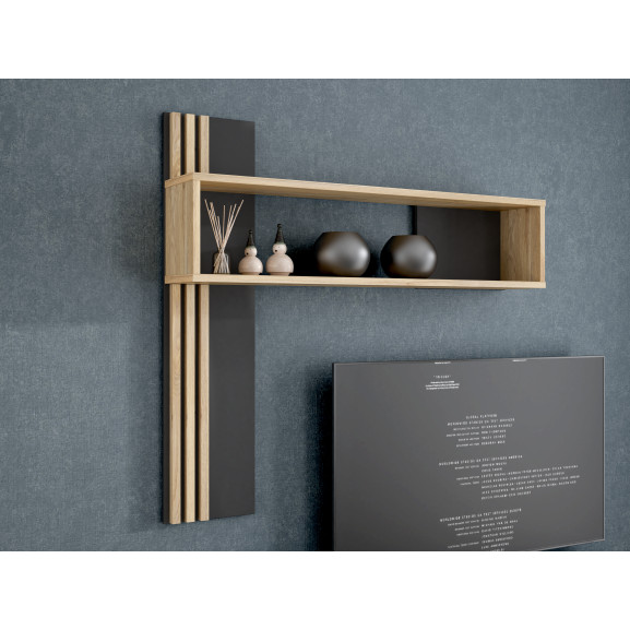 Raft De Perete Suspendat Jeremix, Stejar Mauvella Si Negru Mat, 130 Cm
