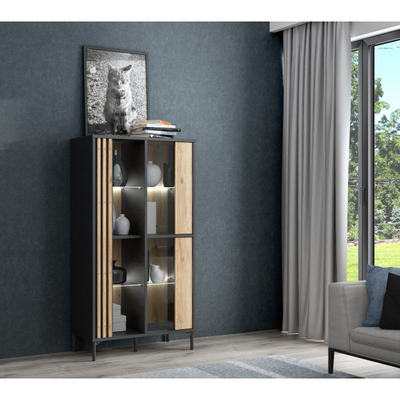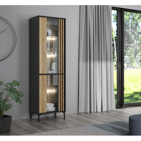 Vitrina Inalta Jeremix, Stejar Mauvella Si Negru Mat, 59 Cm