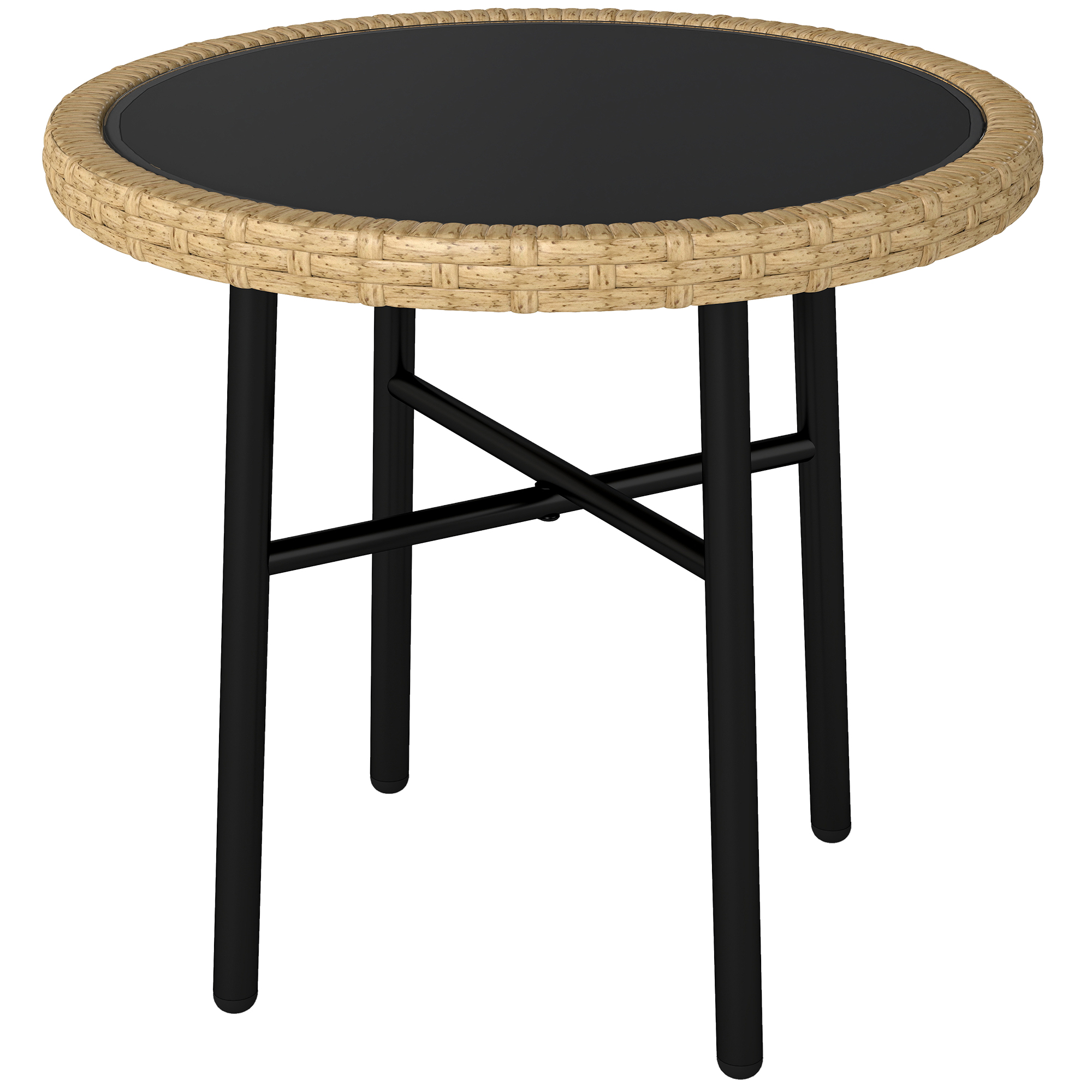Outsunny Masă de Cafea Rotundă de Grădină, Masă Auxiliară Exterioară din Rășină Împletită și Blat din Sticlă Securizată, 46x46x43cm, Natural | Aosom Romania