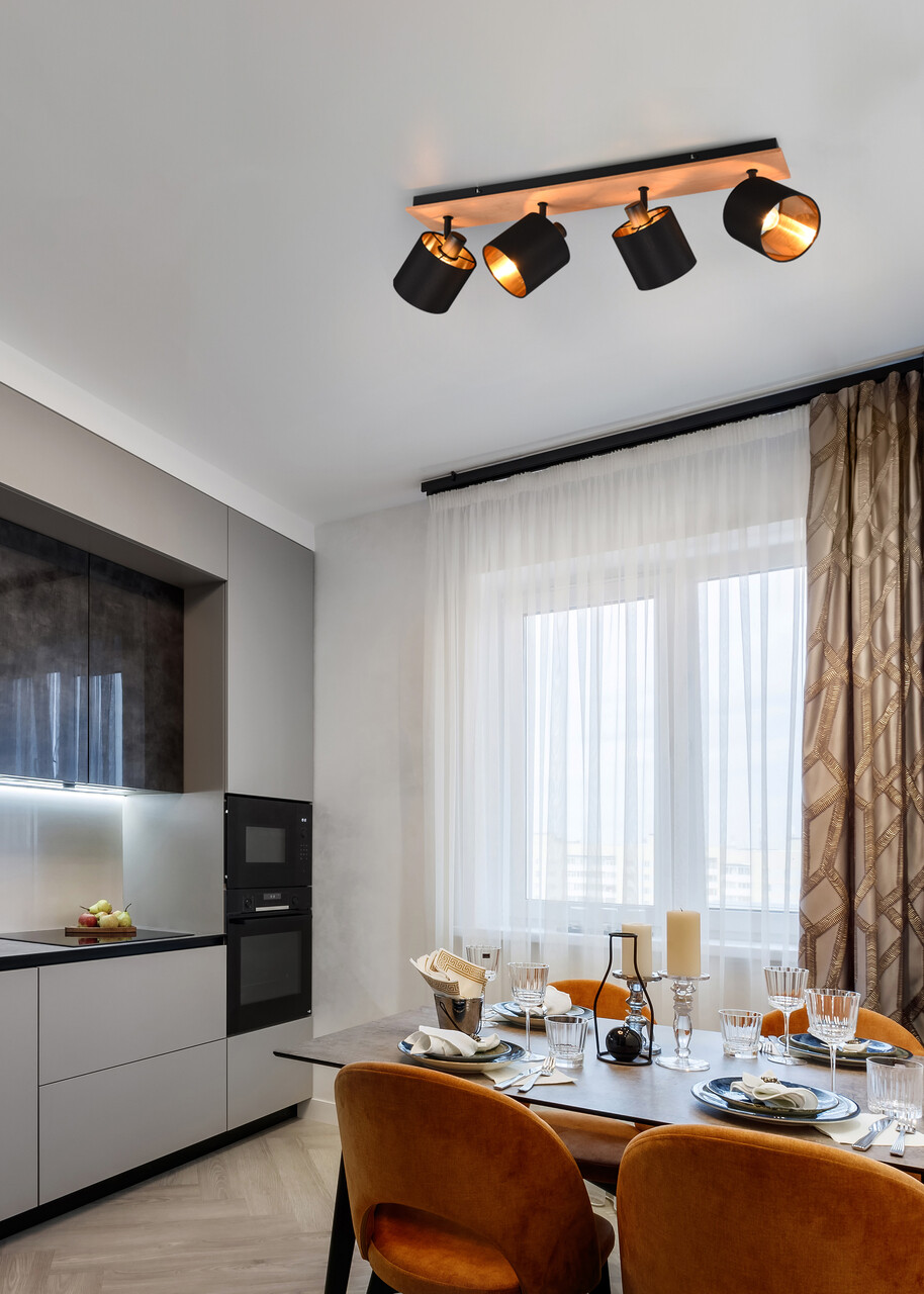Plafoniera Tommy, RL, 72x12x19.5 cm, 28W, 4x E14, metal, negru/natur