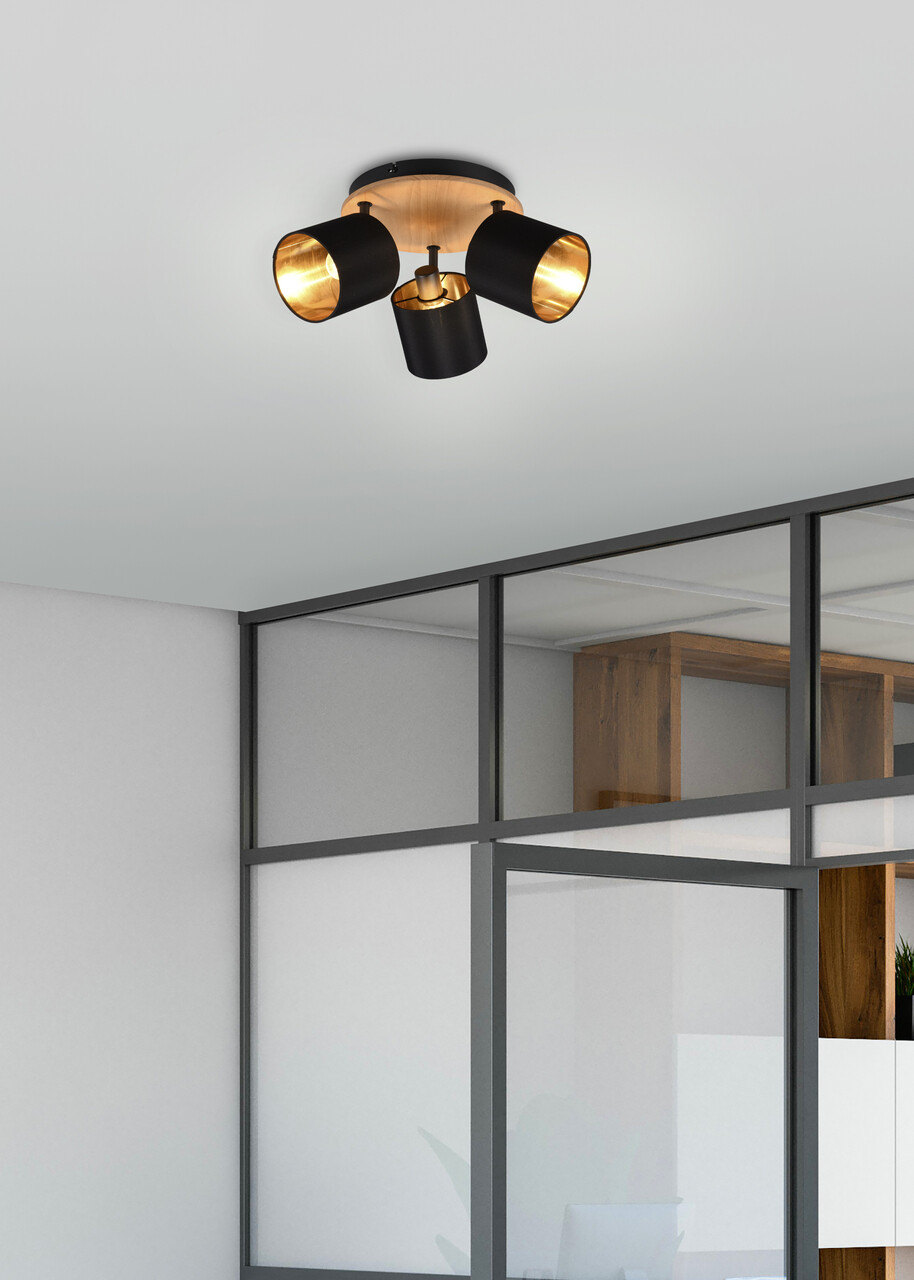 Plafoniera Tommy, RL, 25x12x22.5 cm, 28W, 3x E14, metal, negru/natur