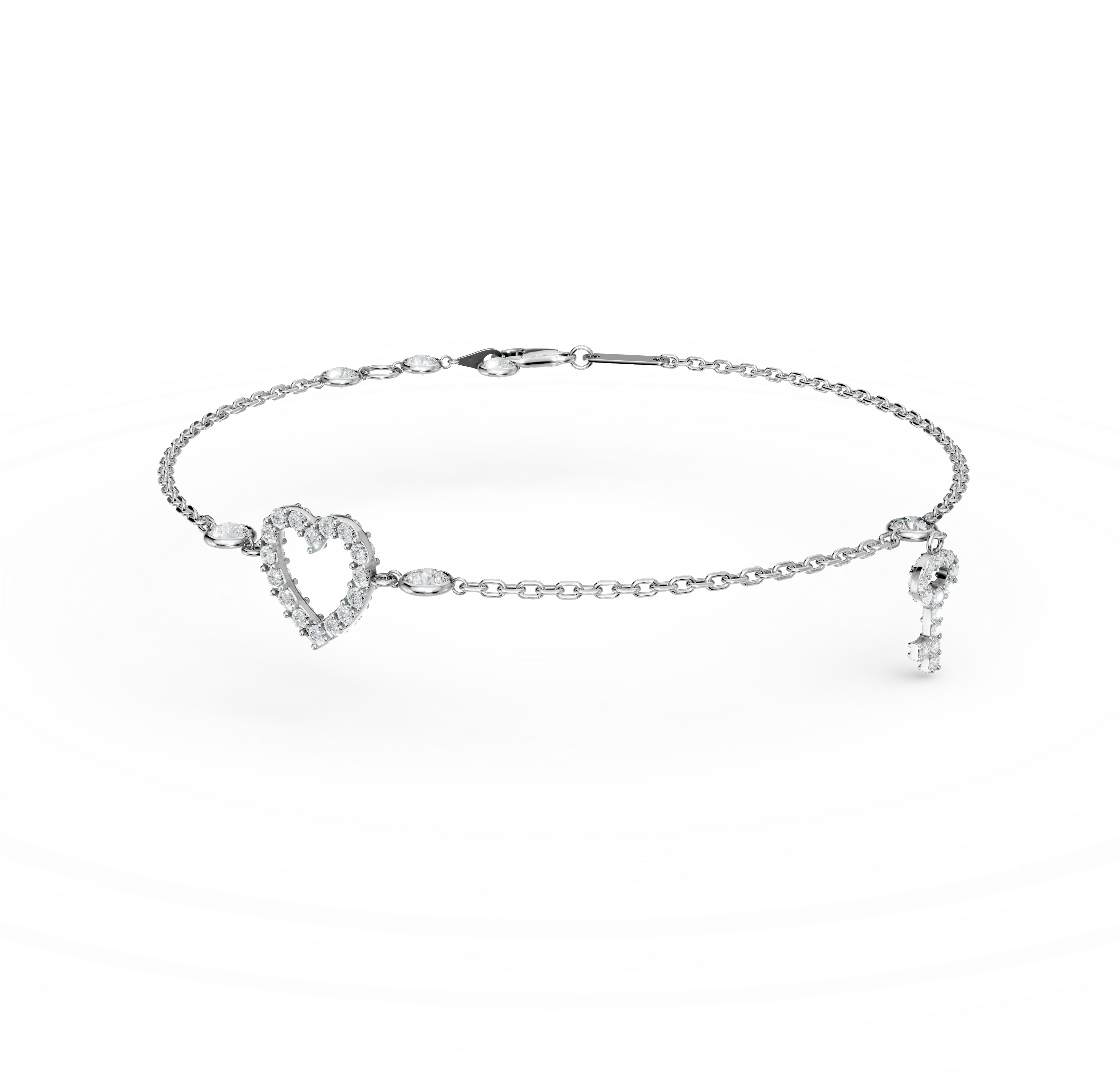 Bratara cu pandantiv inima si cheie din aur alb si zirconii
