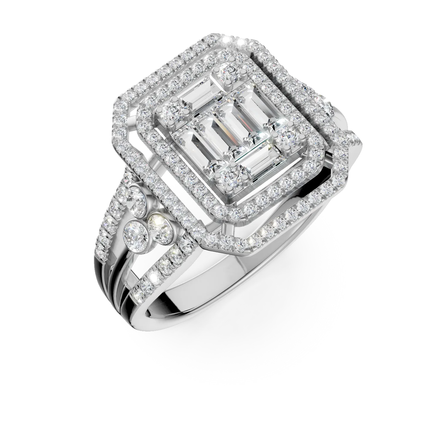 Inel geometric din aur alb cu diamante baguette si rotunde de 0.7ct