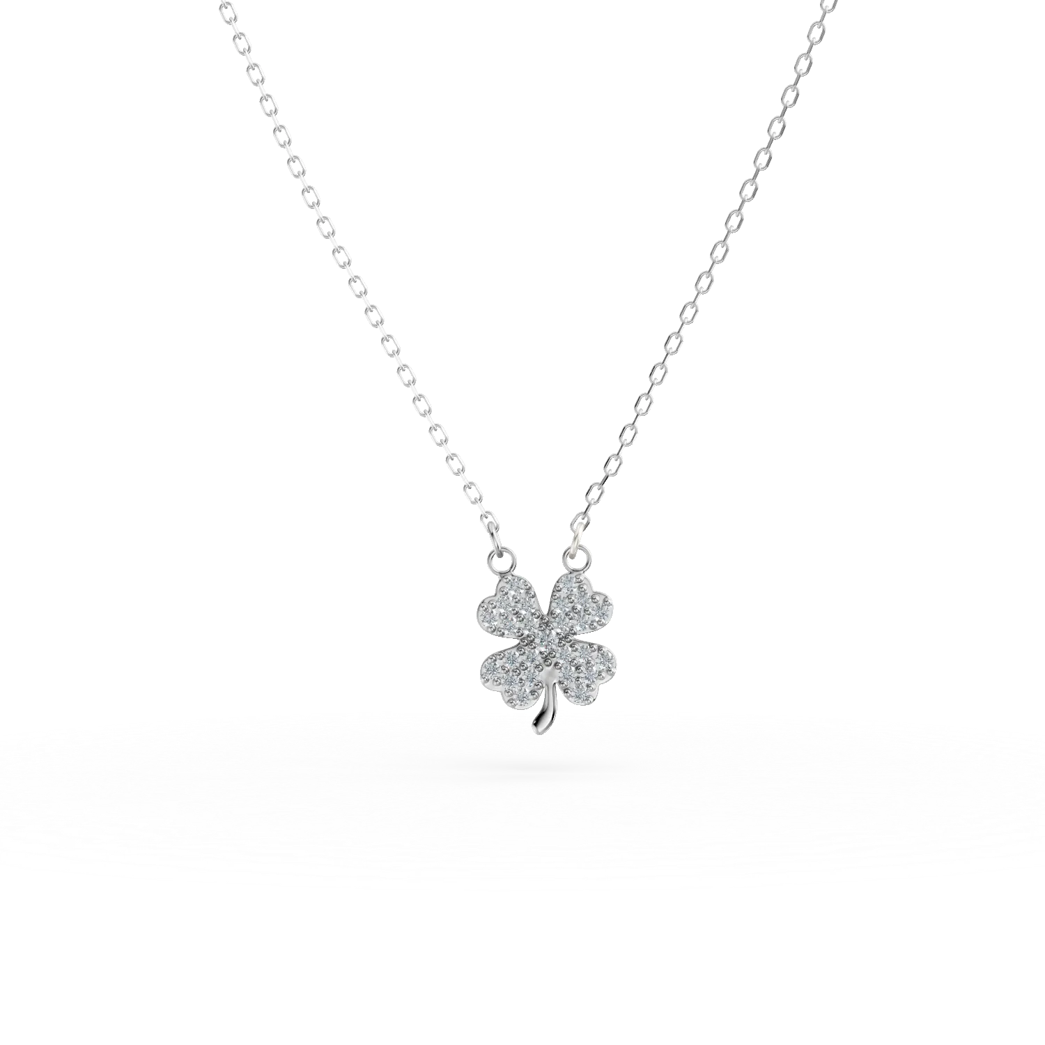 Lant cu pandantiv trifoi din aur alb cu zirconiii