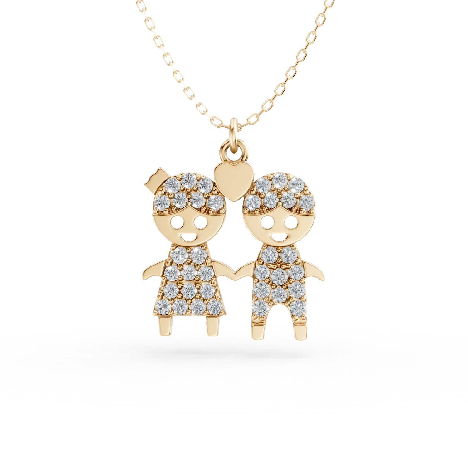 Lant cu pandantiv copil din aur alb cu diamante de 0.11ct