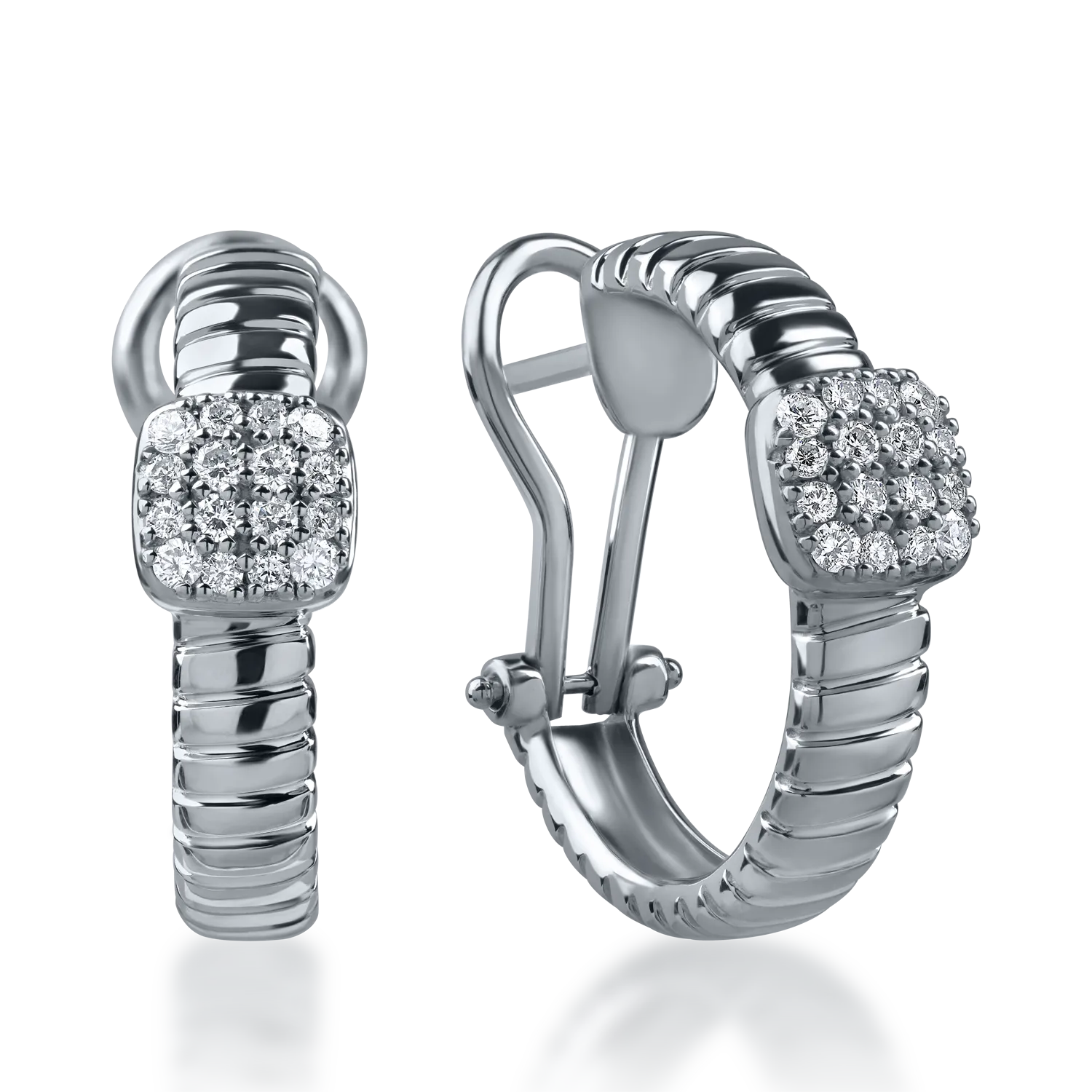 Cercei on-ear din aur alb cu diamante de 0.32ct