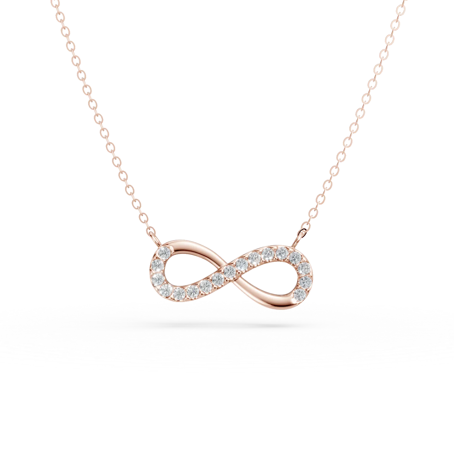 Lant cu pandantiv infinit din aur roz cu zirconii