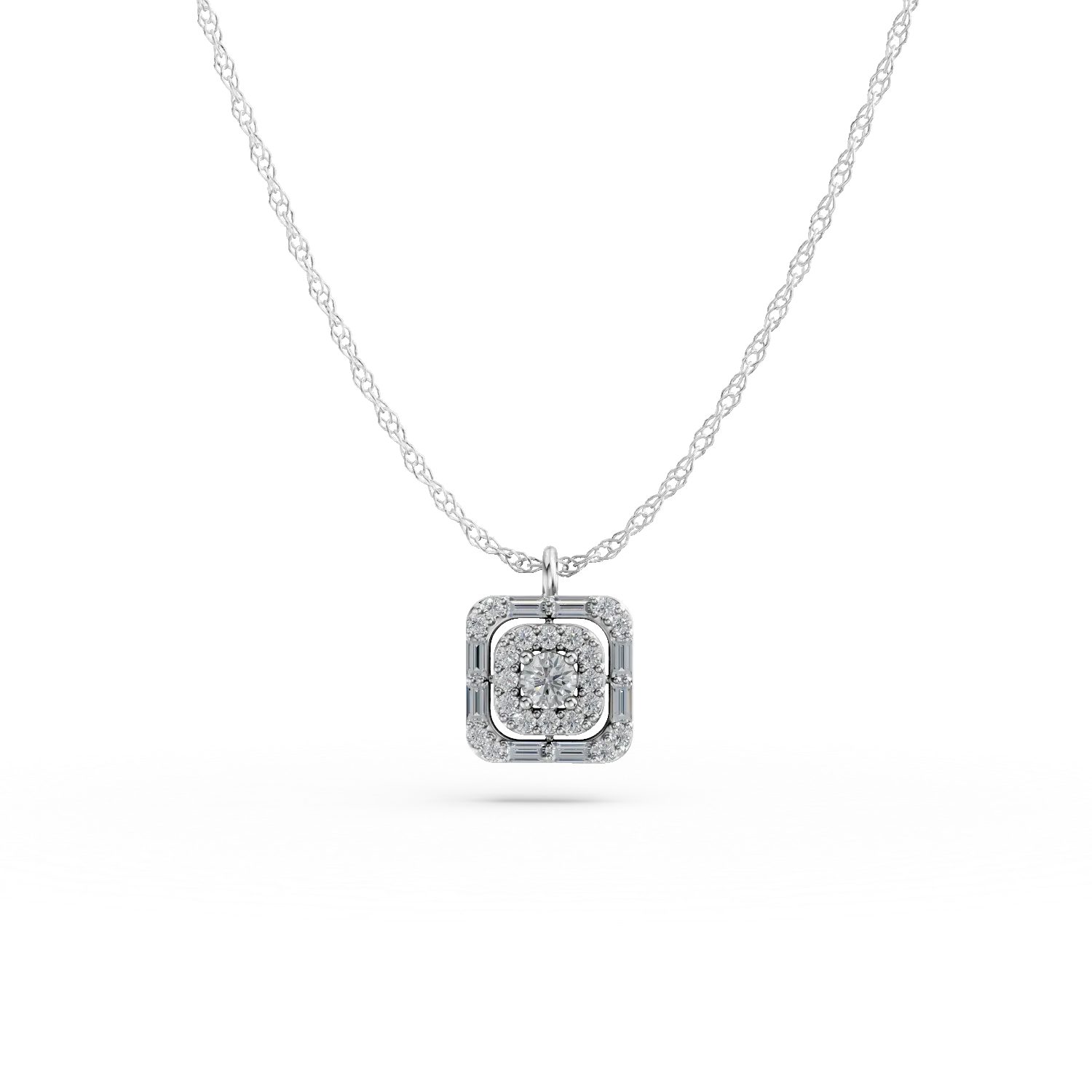 Lant cu pandantiv geometric din aur alb