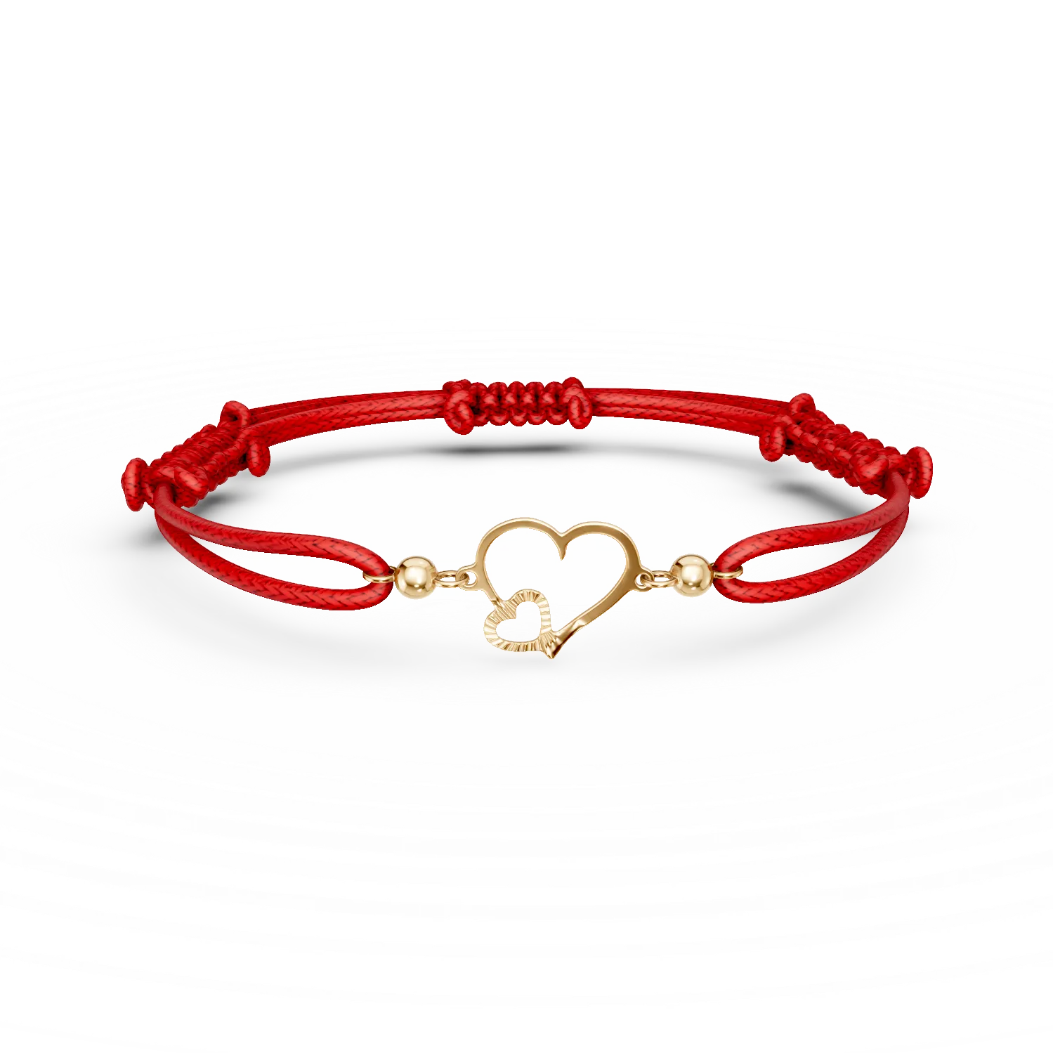 Bratara cu snur si pandantiv inimioare din aur galben