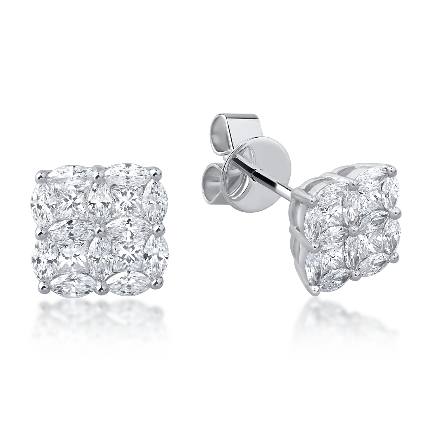 Cercei din aur alb cu diamante princess si marquise de 1.18ct