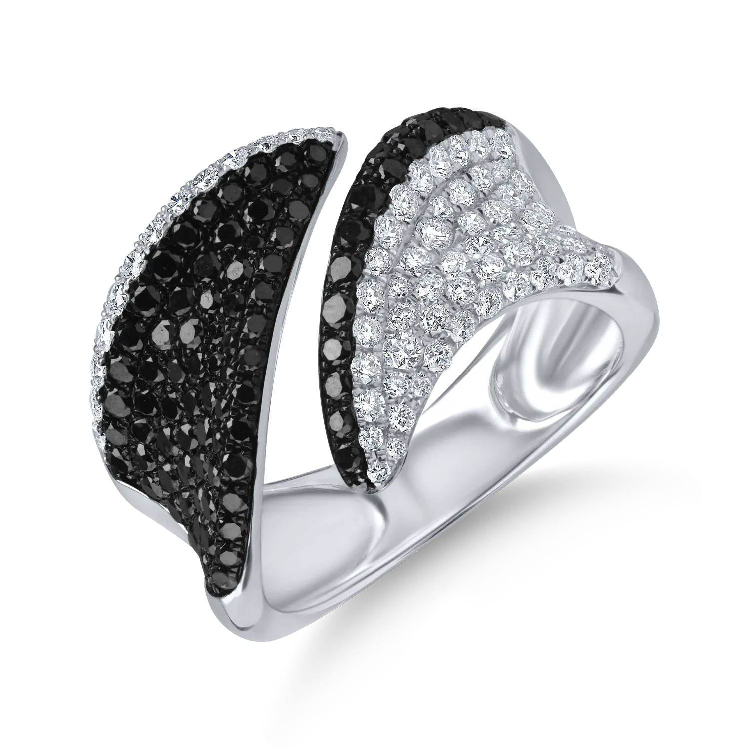 Inel deschis din aur alb cu diamante negre de 0.86ct si diamante de 0.65ct
