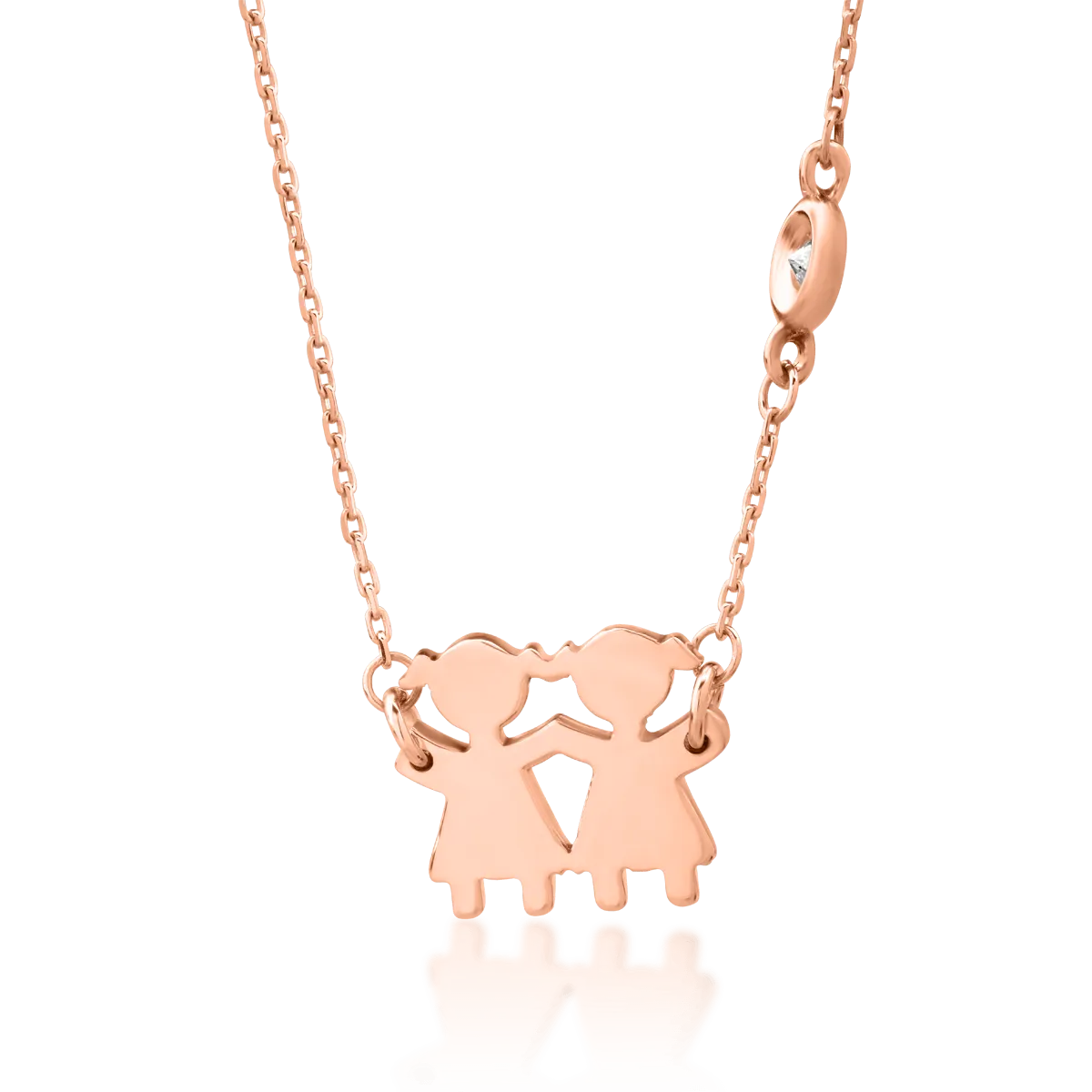 Lant cu pandantiv fetite din aur roz cu diamant de 0.02ct