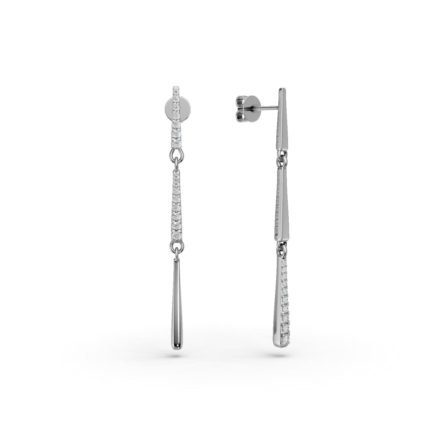 Cercei lungi din aur alb cu diamante de 0.06ct