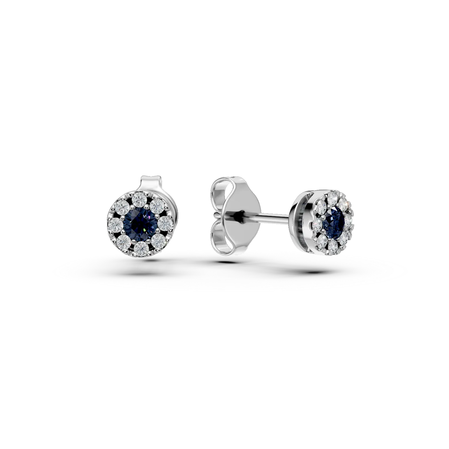 Cercei din aur alb cu safire de 0.17ct si diamante de 0.08ct