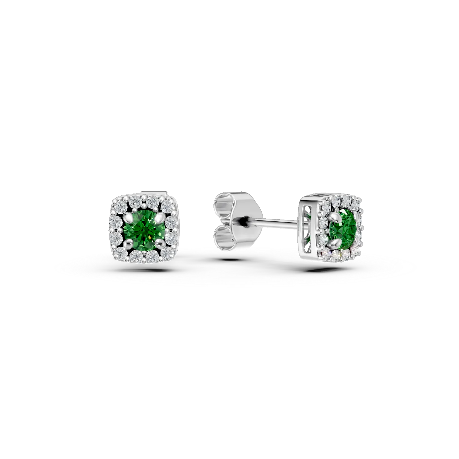 Cercei din aur alb cu smaralde de 0.13ct si diamante de 0.09ct