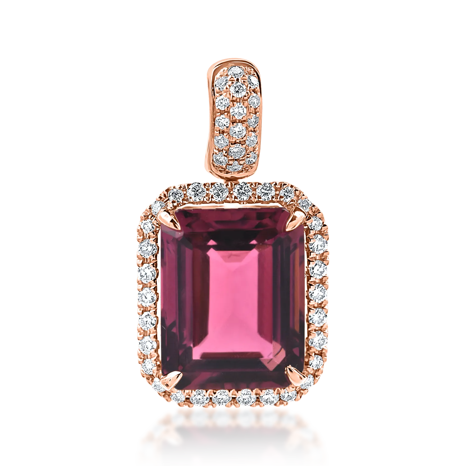 Pandantiv geometric din aur roz cu turmalina roz de 3.2ct si diamante de 0.2ct