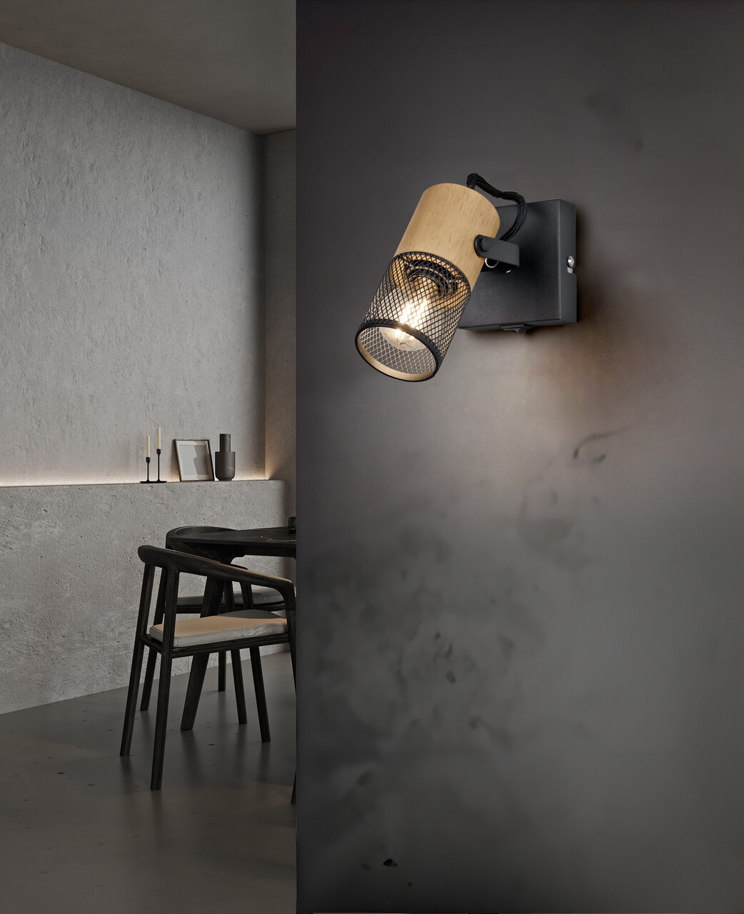 Aplica de perete Tosh, TRIO, 9x13.7 cm, 15W, 1x E14, metal, negru mat/natur