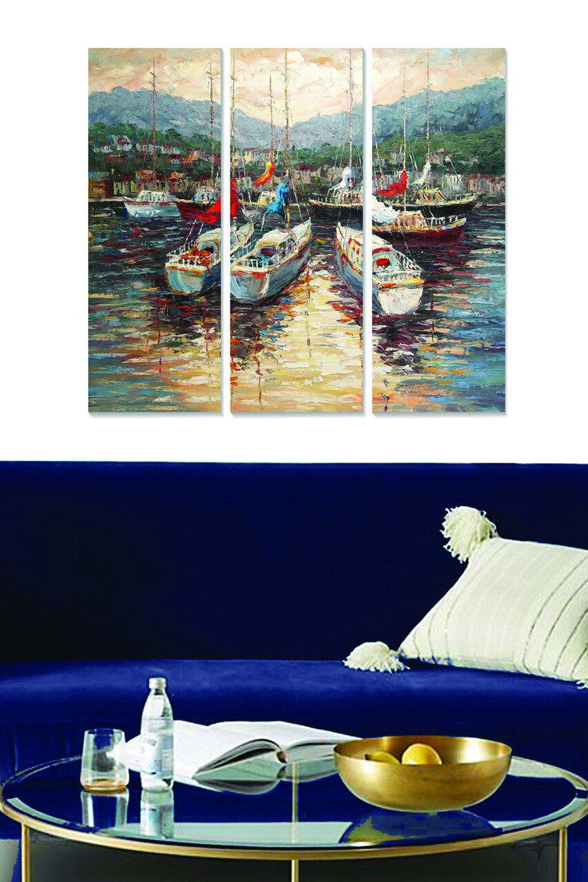 Set 3 tablouri decorative, Huhu259, Cadru: 100% LEMN MASIV (Grosime: 2 cm), Multicolor