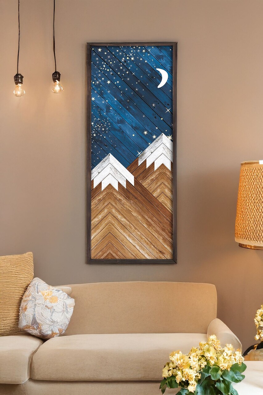 Tablou decorativ, 4570NISC-007, Lemn, Bleumarin / Bej / Portocaliu / Maro