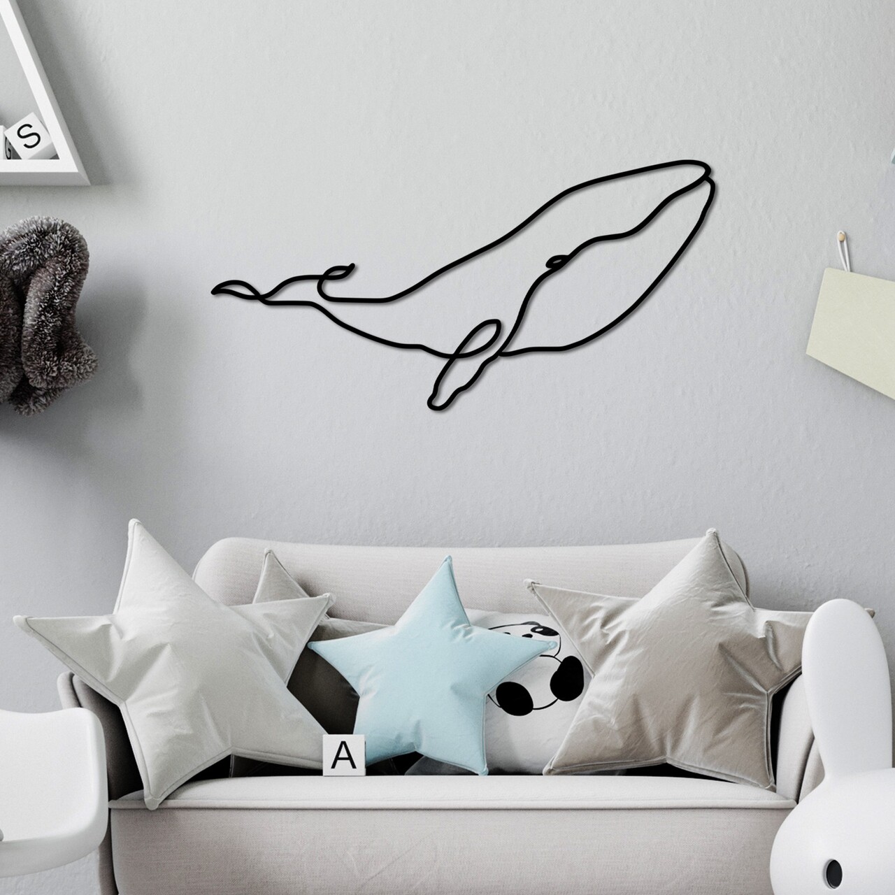 Decoratiune de perete, Whale, Dimensiune: 70 x 34 cm, Negru