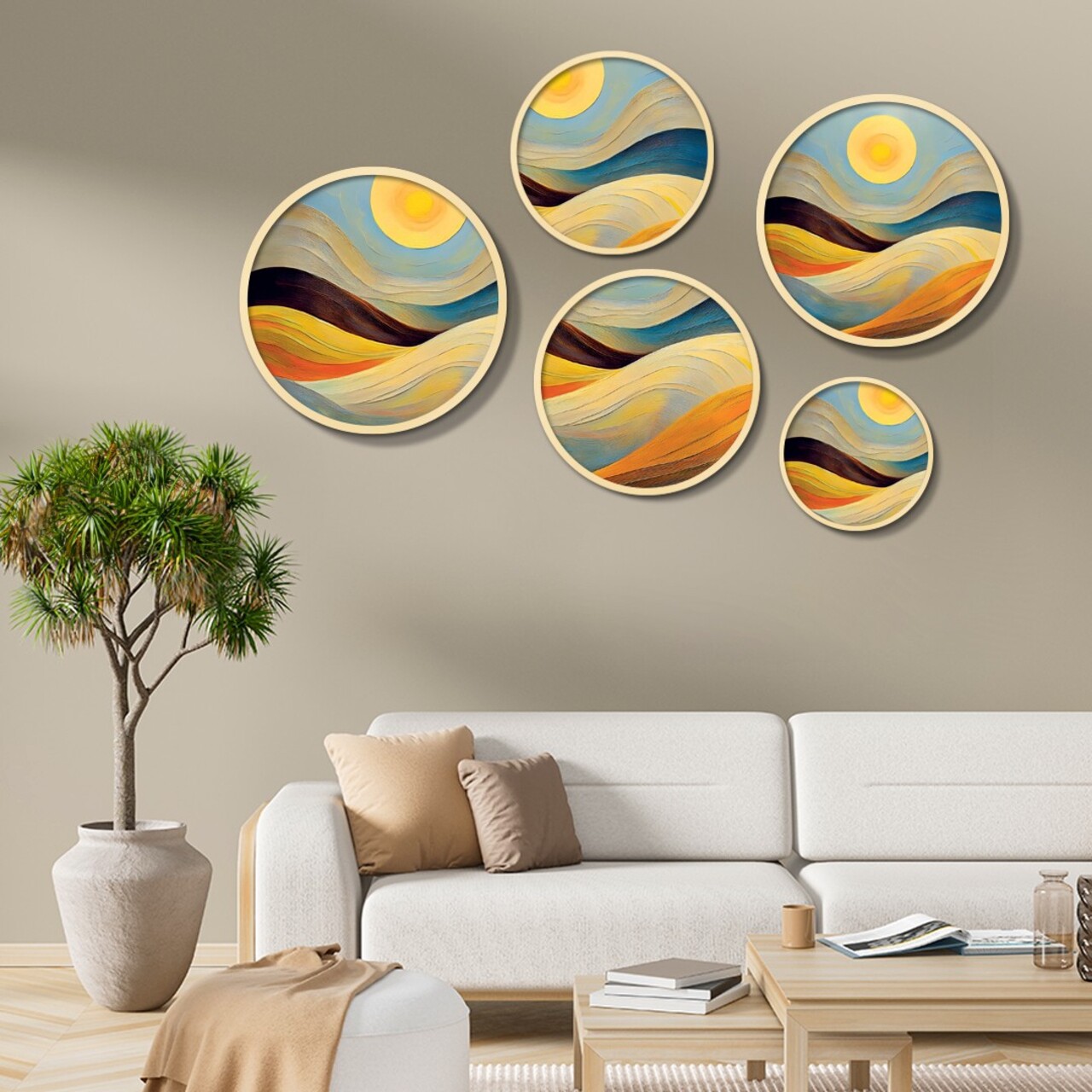 Pictură decorativă MDF cu rame (5 bucăți), Yats-19, Dimensiune: 43,5 x 43,5 cm (1 bucată), Multicolor