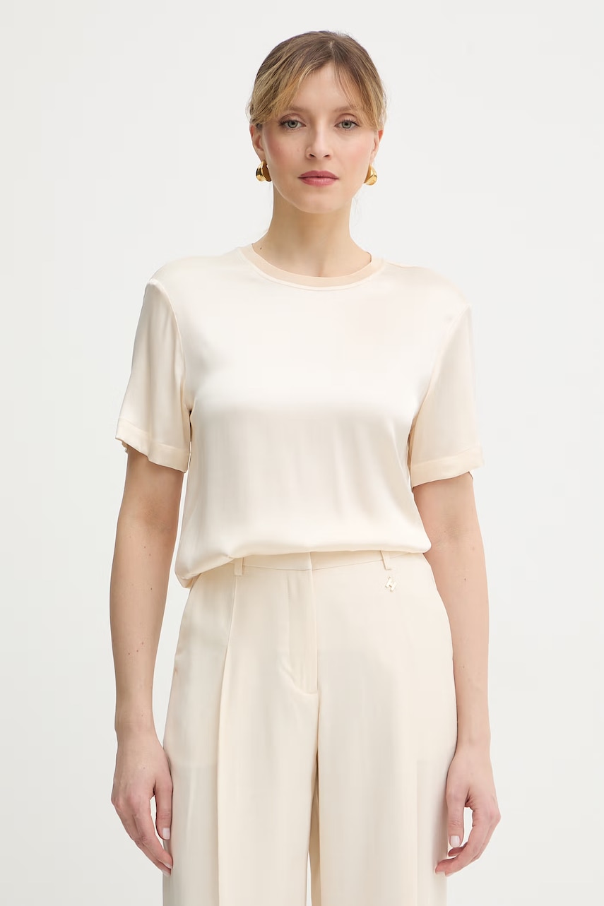 Bluza eleganta din satin alba cu maneci din tull accesorizate cu buline catifelate