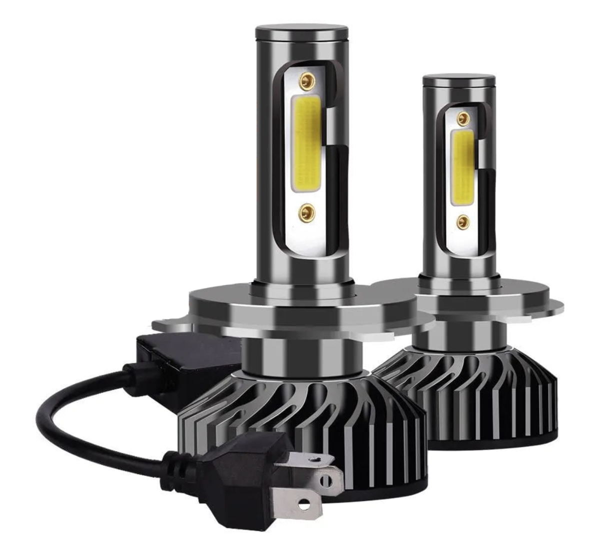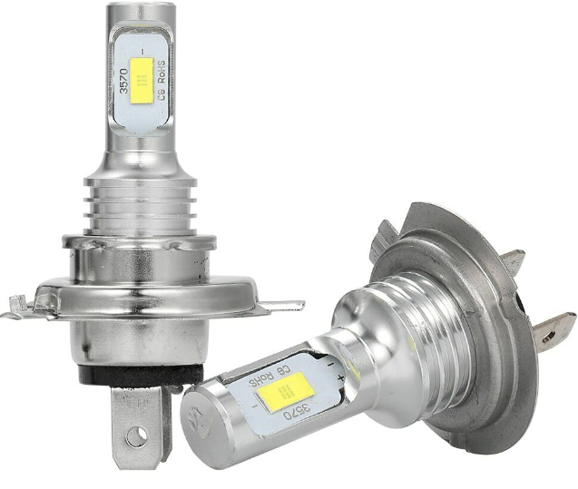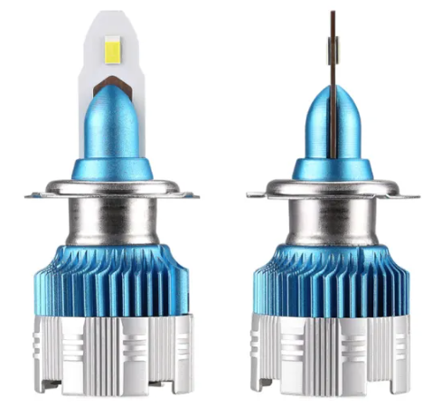 Set 2 becuri LED H4 cu doua faze Lumina Alba temperatura 8000k cu Ventilator