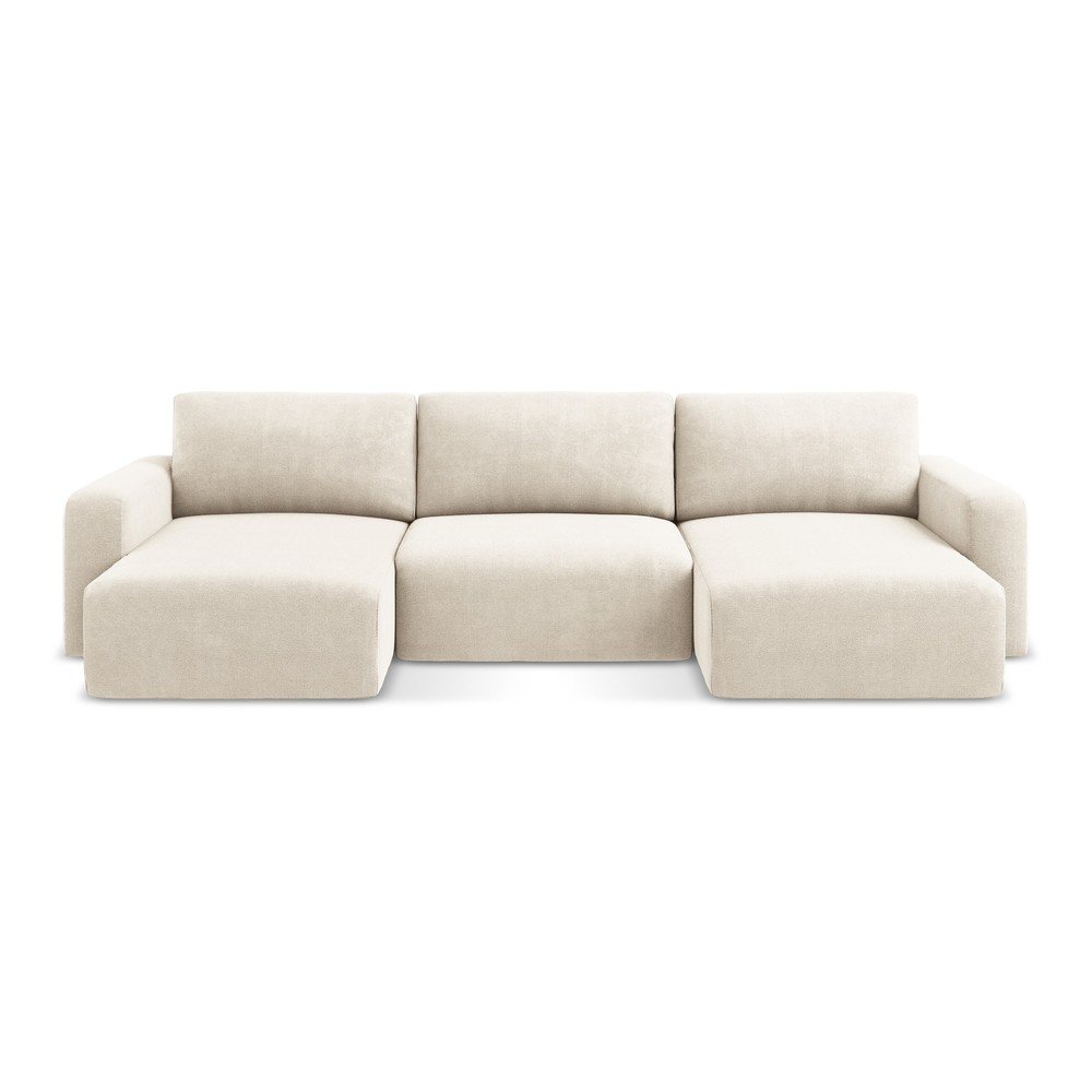 Colțar alb cu tapițerie din țesătură bouclé (în formă de U) Aloha – Makamii