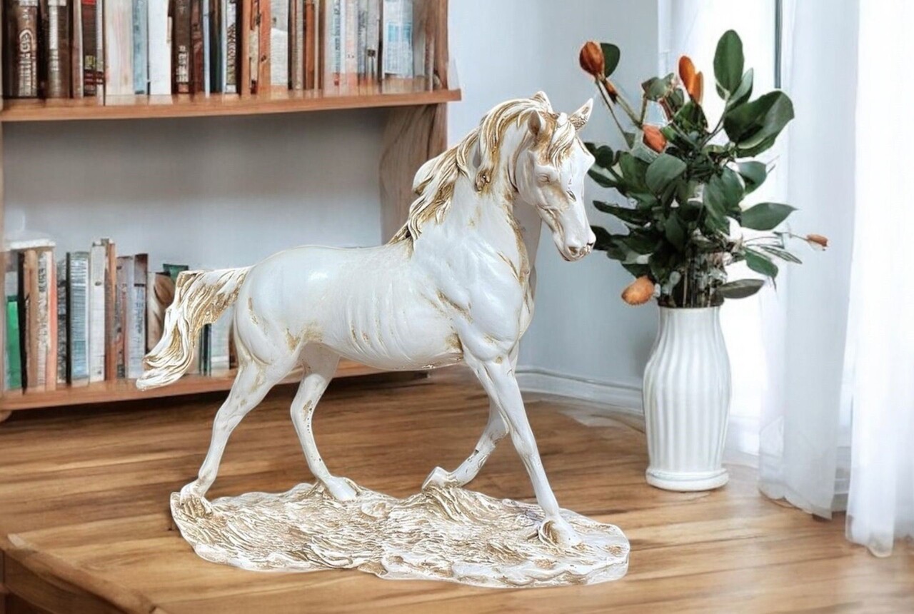 Decoratiune, CY0445, 13x31x13 cm, Poliester, Alb/Auriu