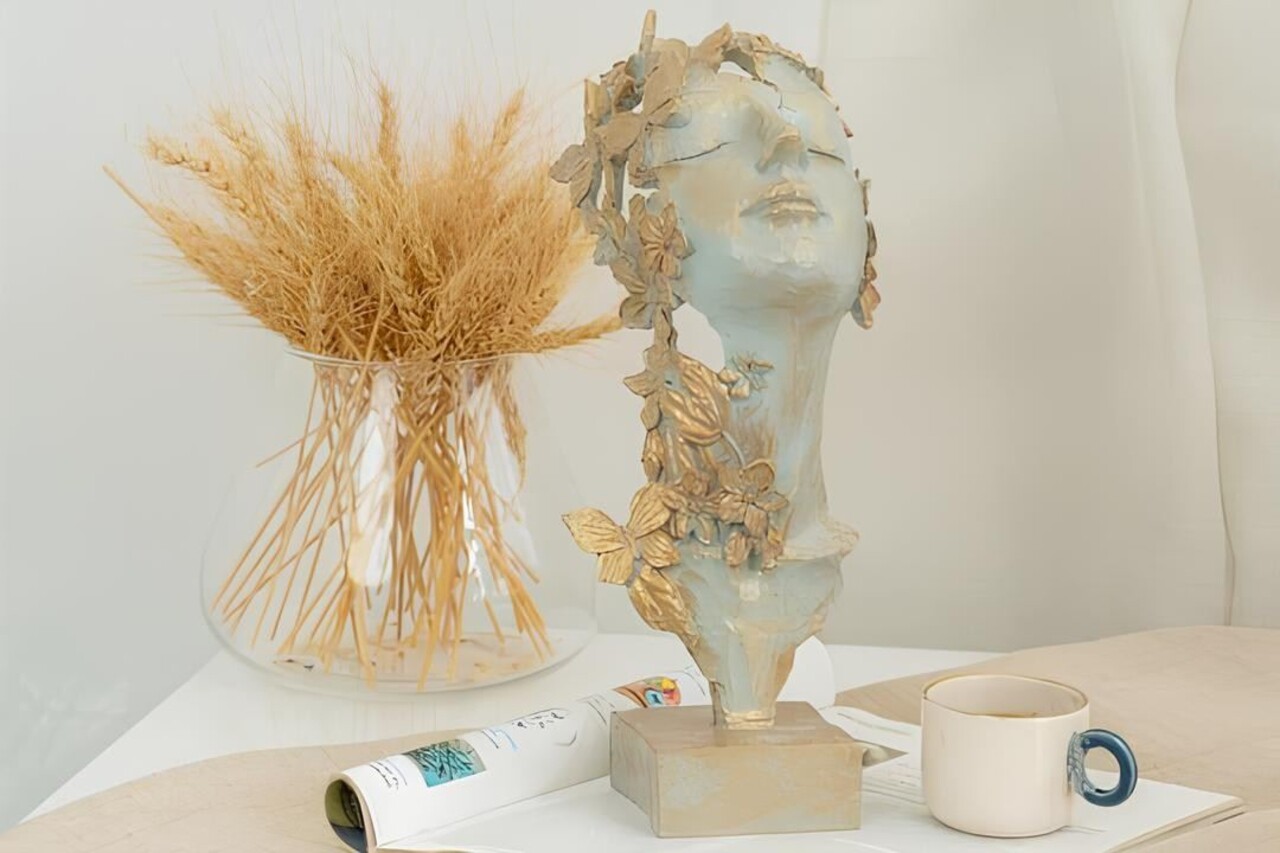 Decoratiune, CY0378, 30x12x43 cm, Poliester, Alb/Auriu