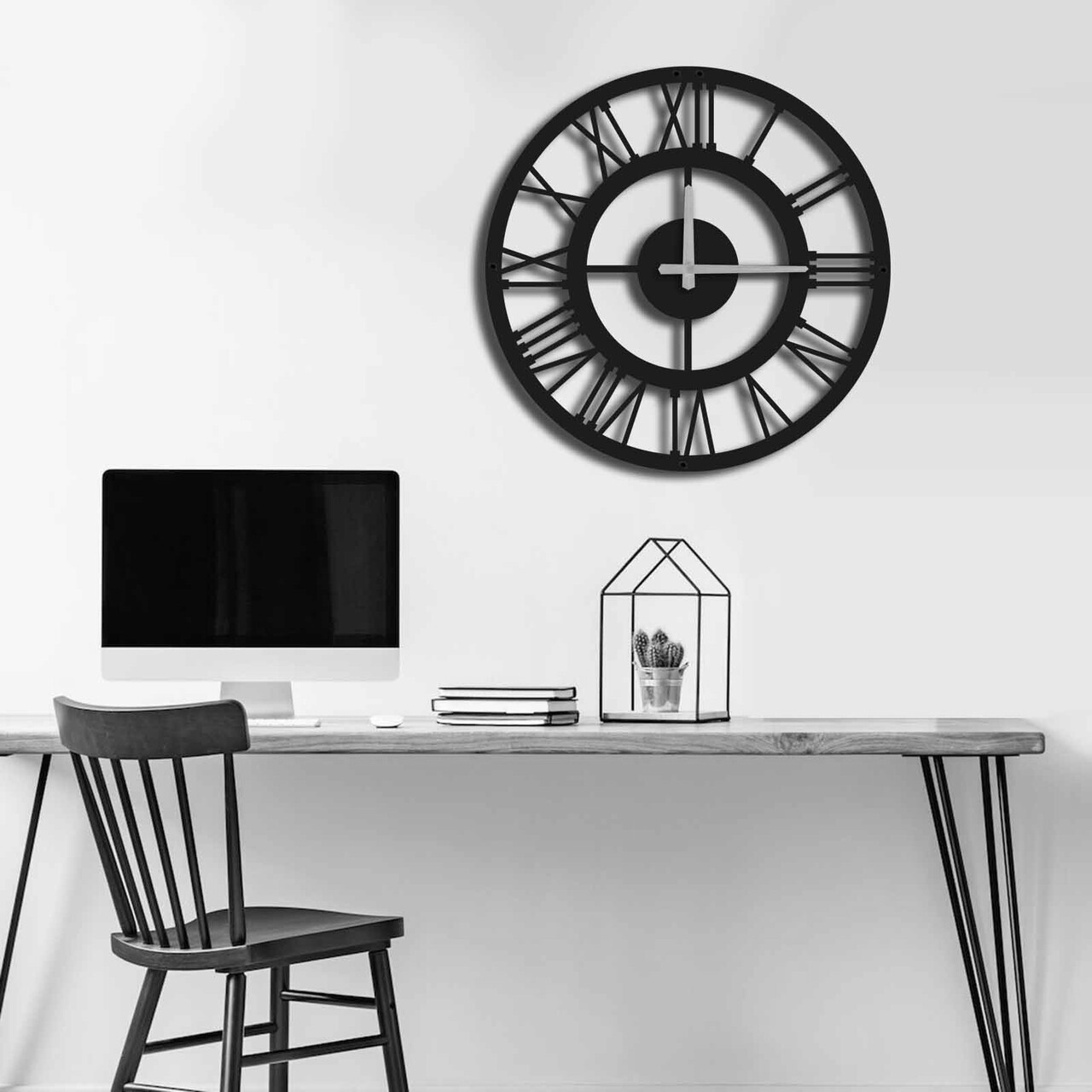 Ceas de perete, Mclock-00122, Lățime: 58 cm Înălțime: 65 cm Adâncime: 7 cm, Negru