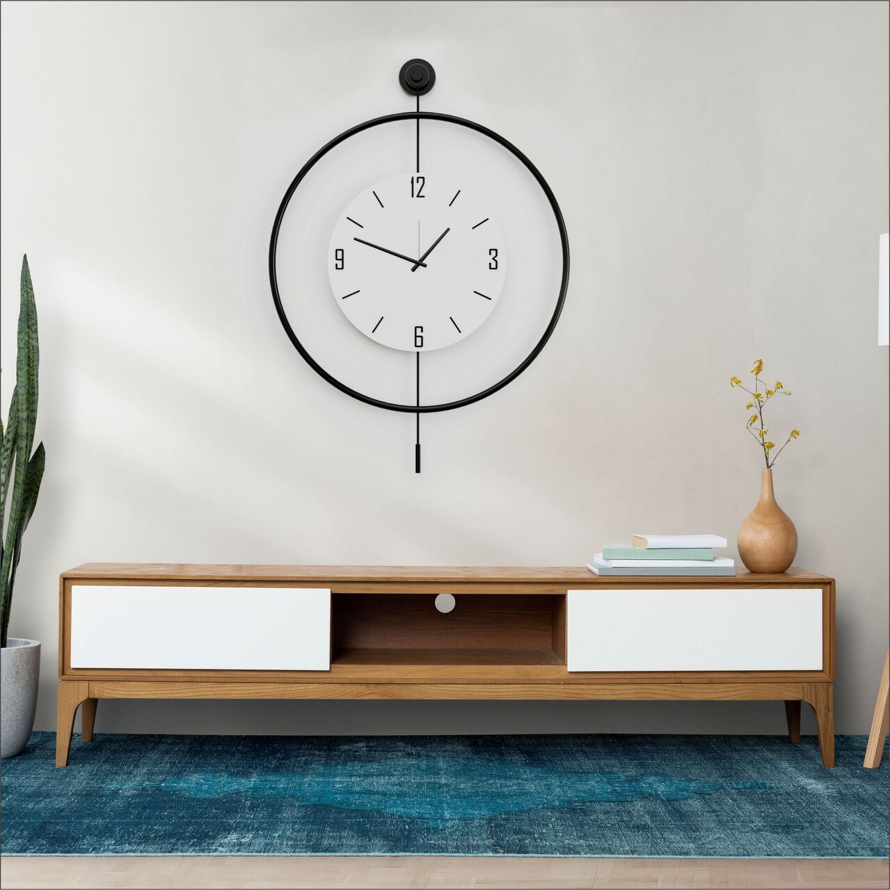 Ceas de perete, Sntr, MDF dublu strat, Alb/Negru