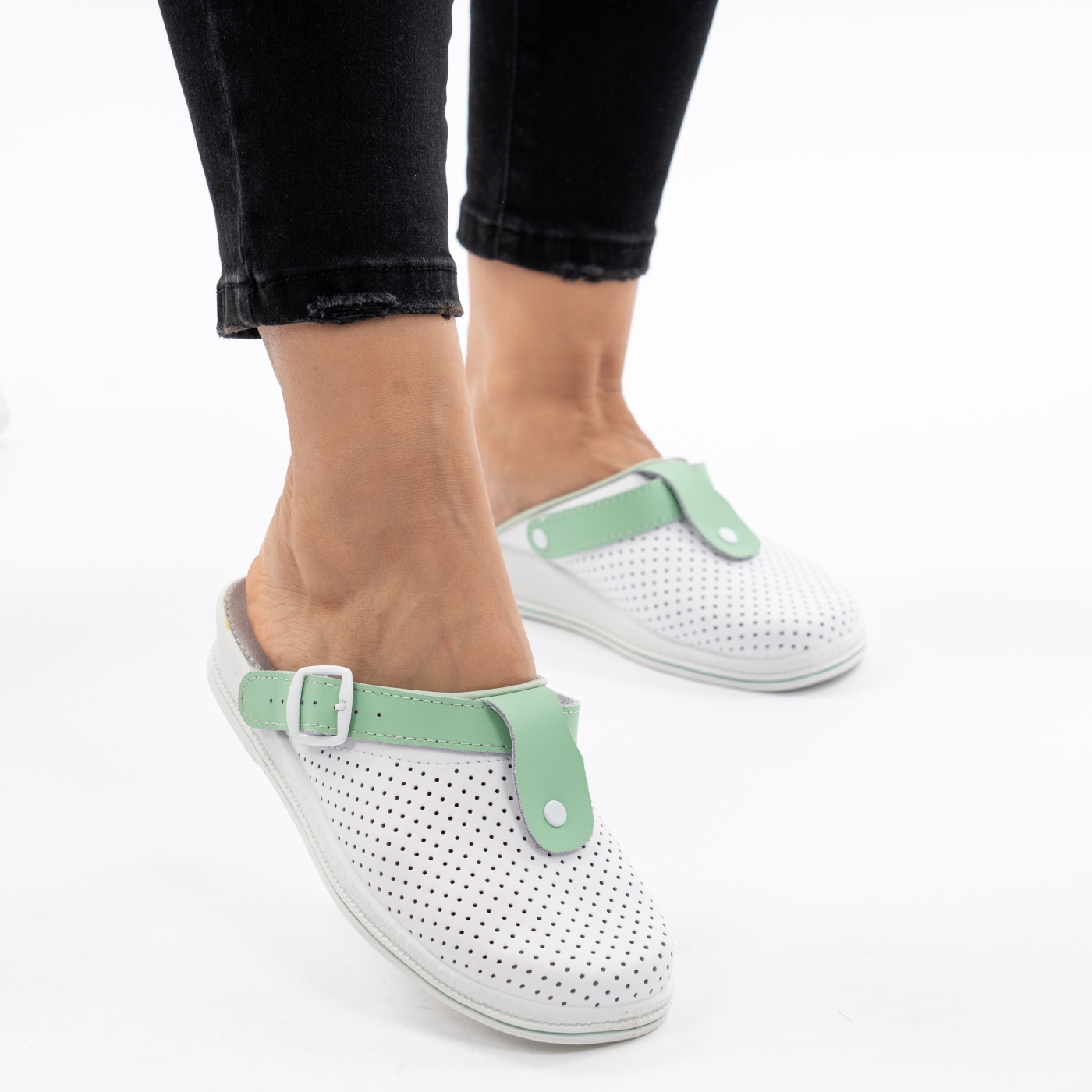 Saboti Talpa Ortopedica Piele Naturala 50-08/06, Alb cu Verde