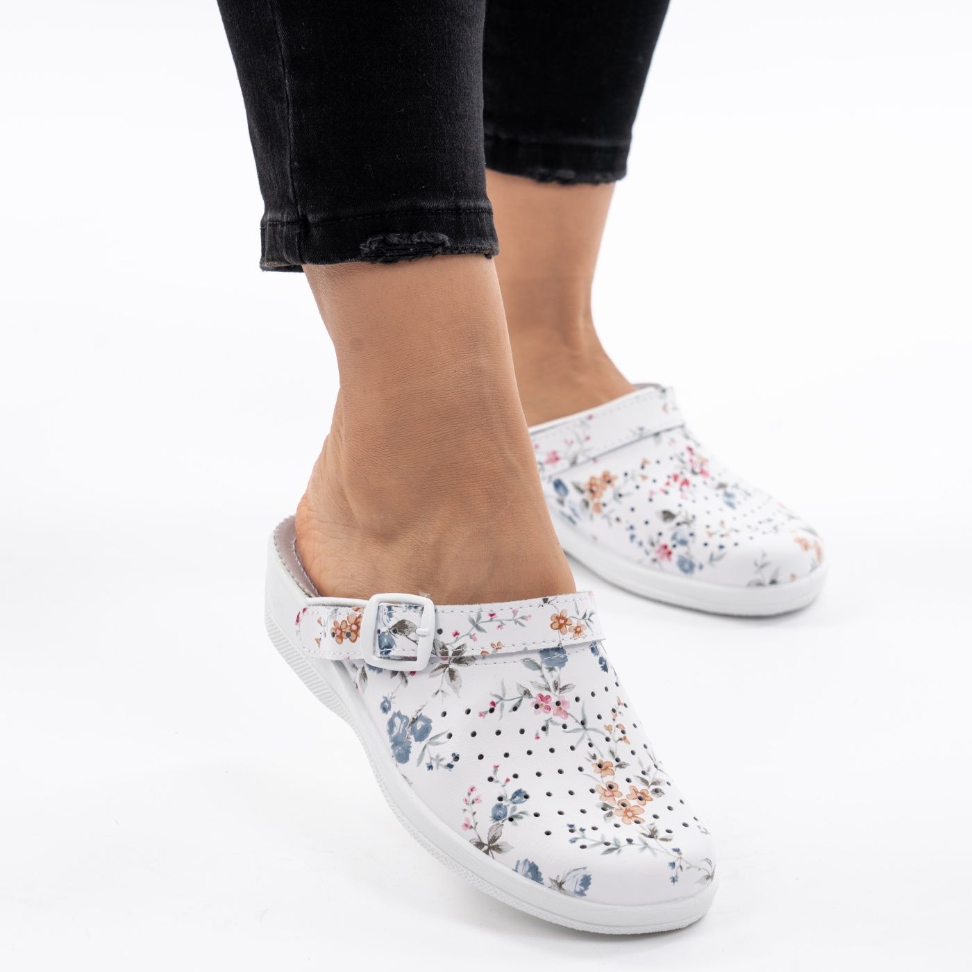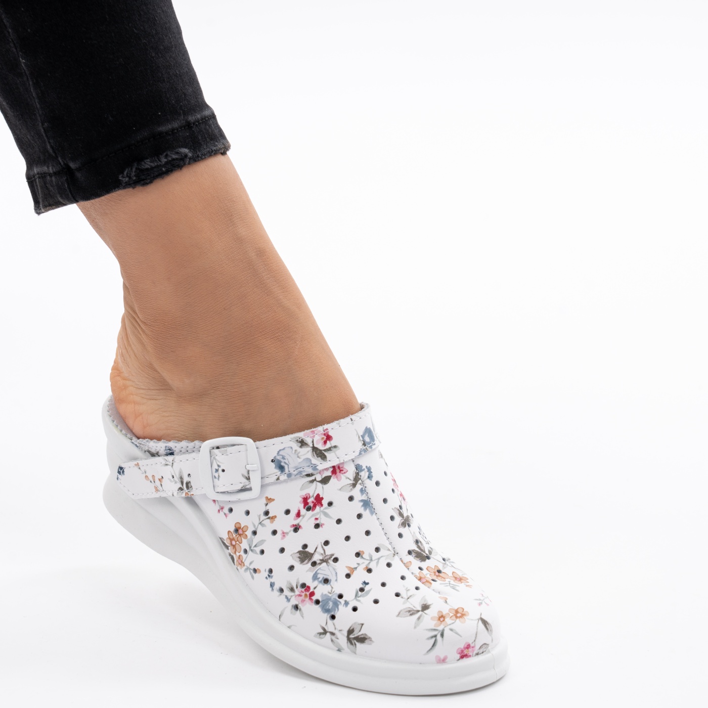 Saboti Talpa Ortopedica Piele Naturala 04-04 Alb cu Flori