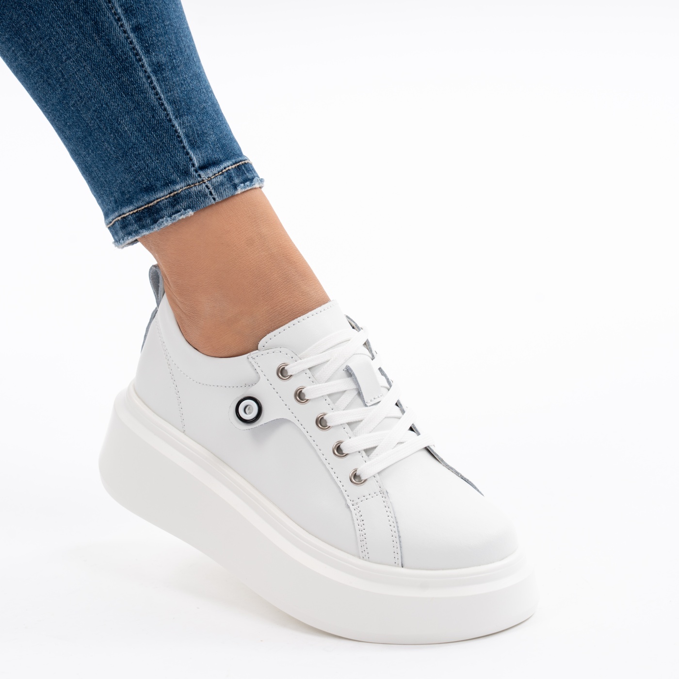 Pantofi Casual Piele Naturala Alb 523