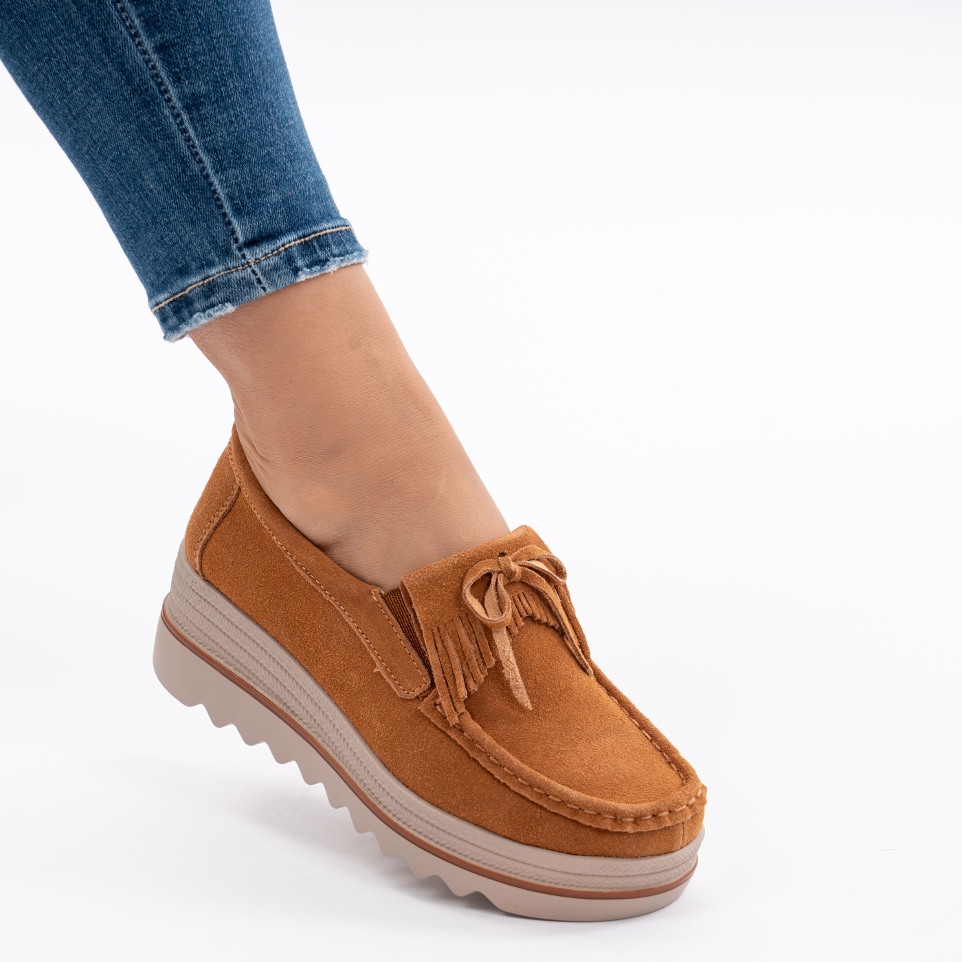 Pantofi Casual Piele Naturala Intoarsa Camel 2017