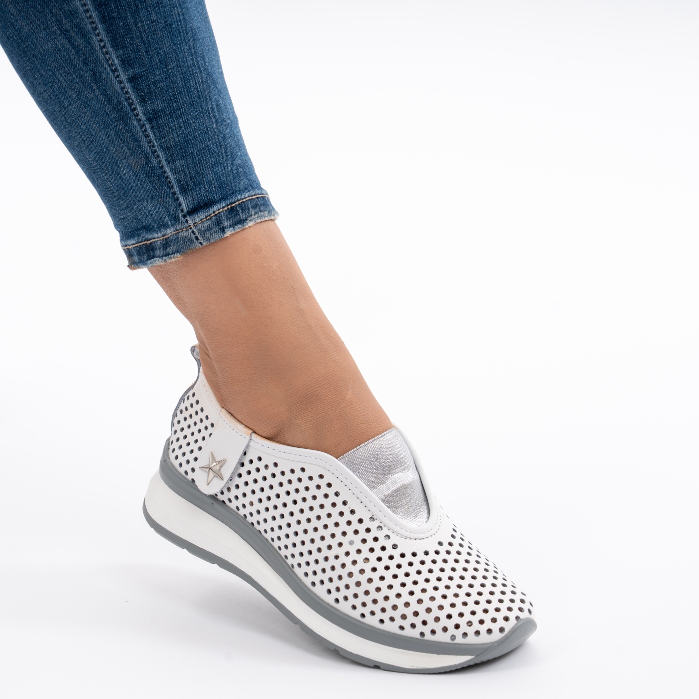 Pantofi Casual Din Piele Naturala Albi 1260-10