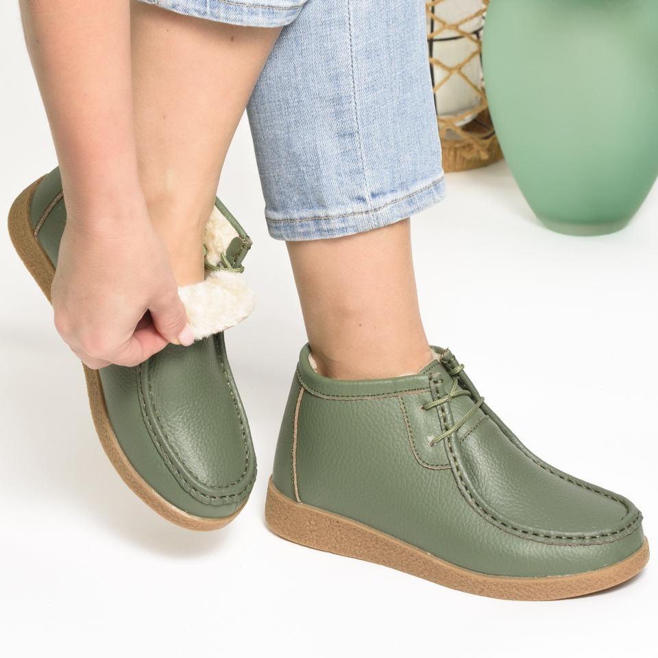 Ghete Piele Naturala Imblanite Talpa Ortopedica Verde A385