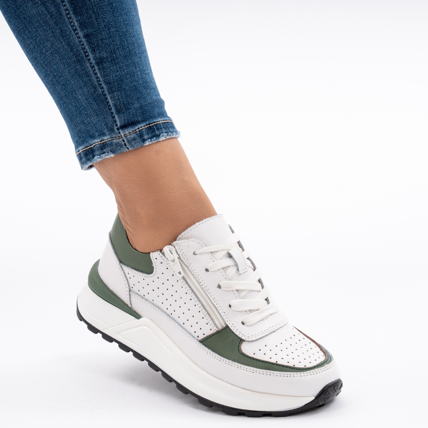 Pantofi Sport Piele Naturala Alb&Verde H18