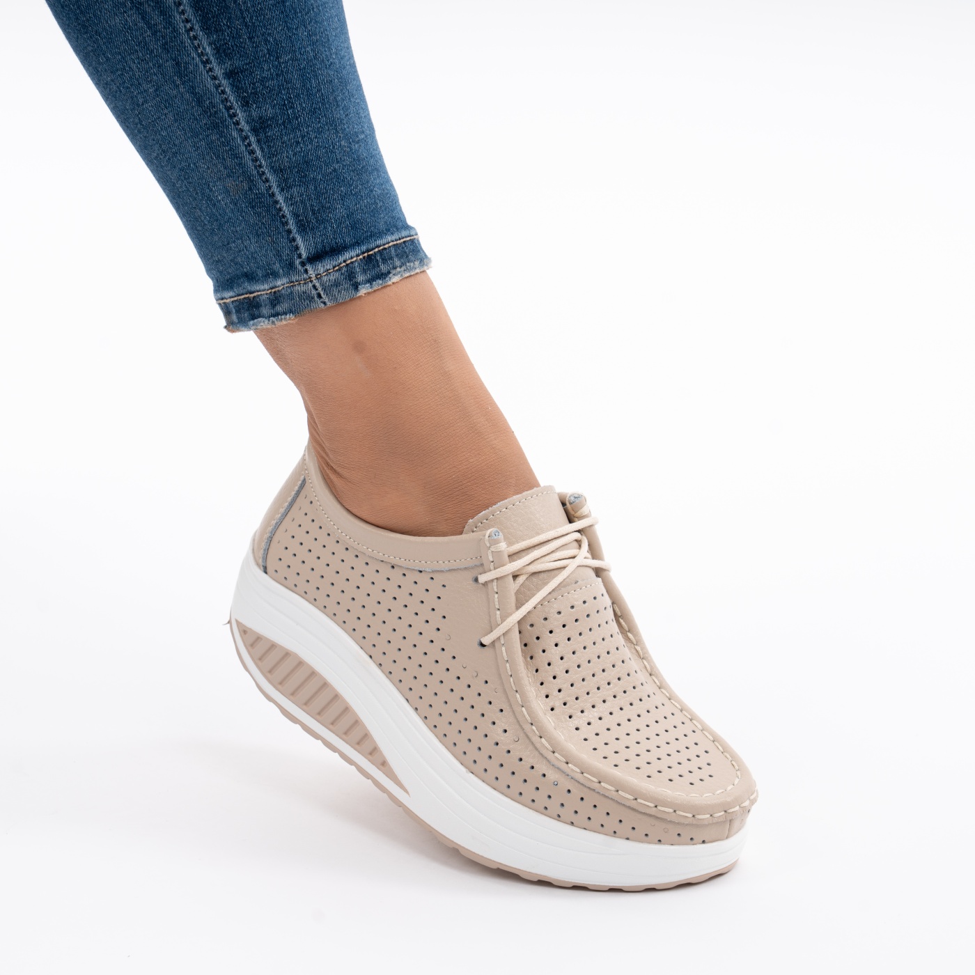 Pantofi Casual Din Piele Naturala Bej JSB101
