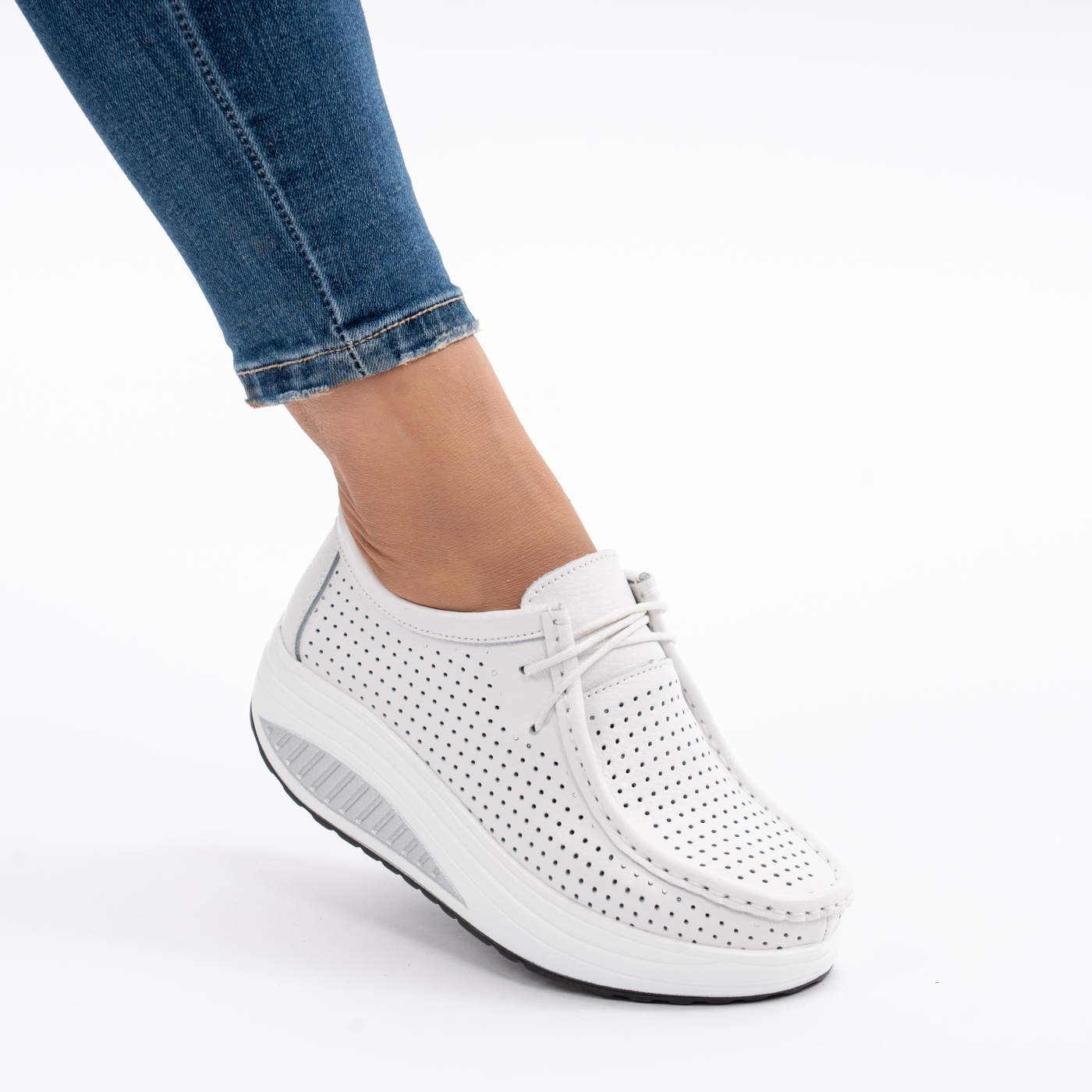 Pantofi Casual Piele Naturala Alb 2070