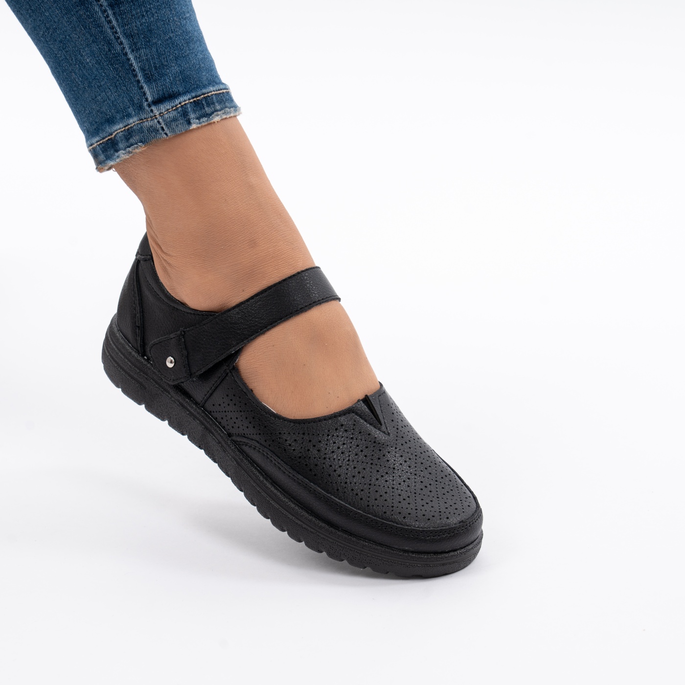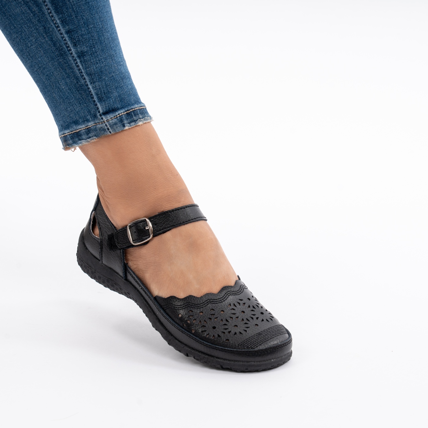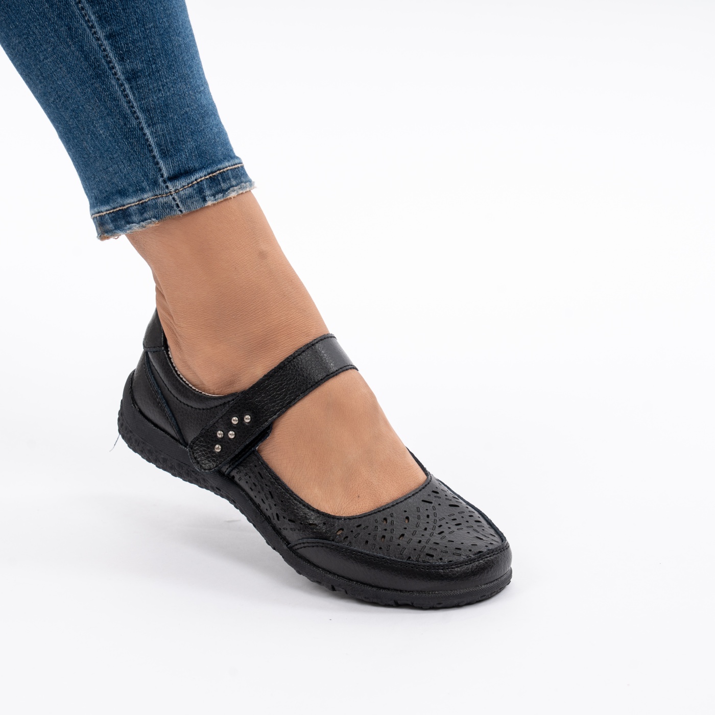 Pantofi Piele Naturala Cu Bareta Negru F20-006