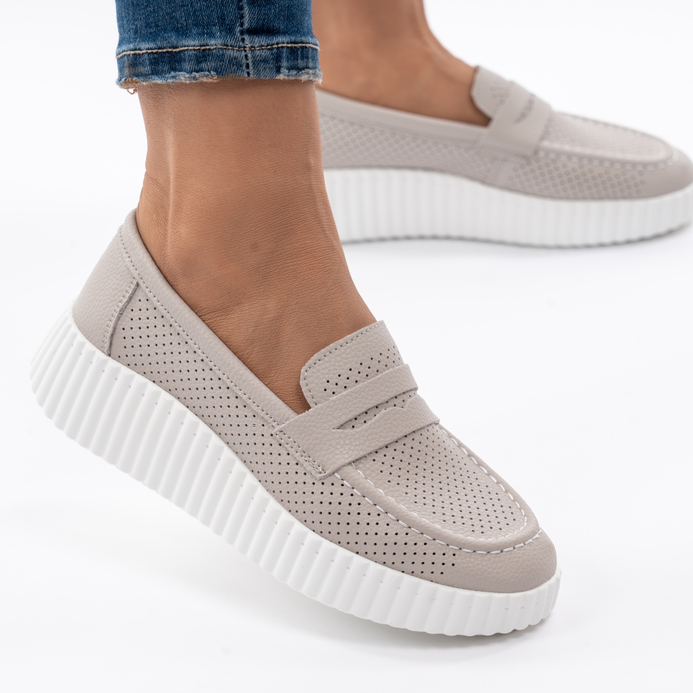 Pantofi Casual Piele Naturala Gri MM260